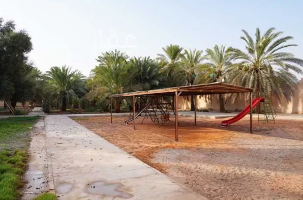 فيها اكثر من ٥٠ نخله منوعه و مثمره ، و عدة اشجار حمضيات وزيتون مجالس بيوت شعر ومسبح